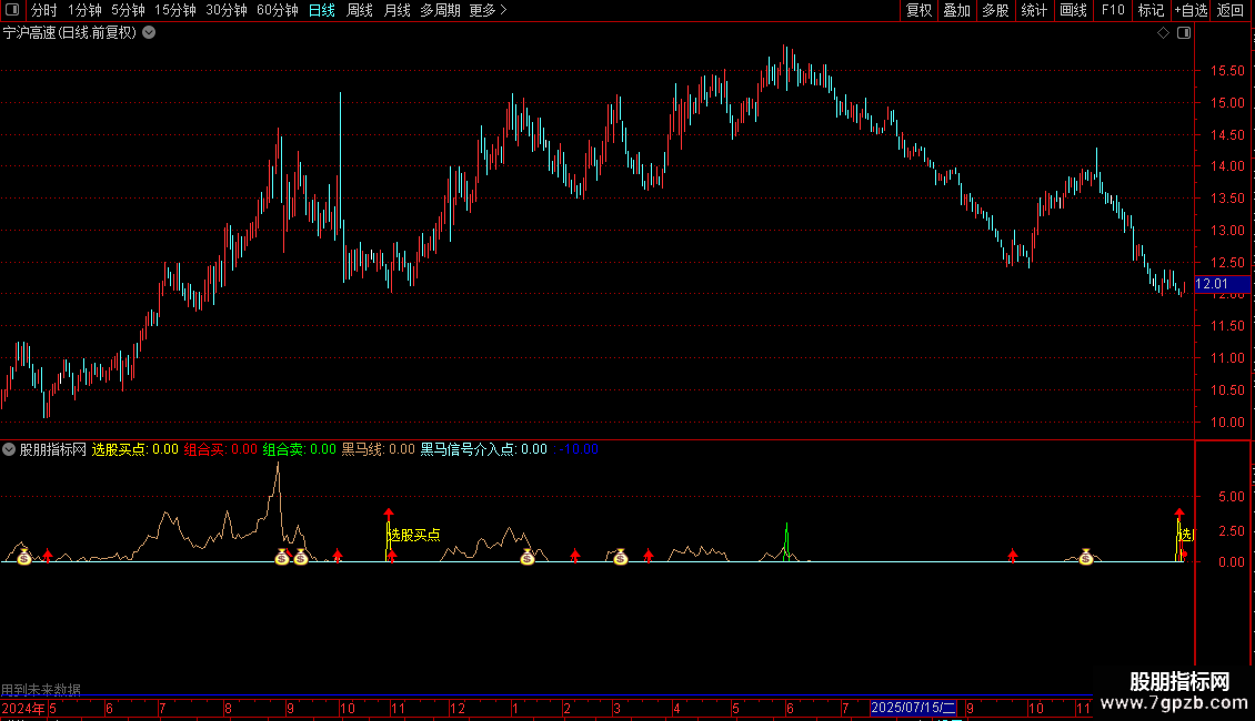 DRAWTEXT(黑马信号介入点>0,4.5,'●我的黑马介入点'), , COLORRED;