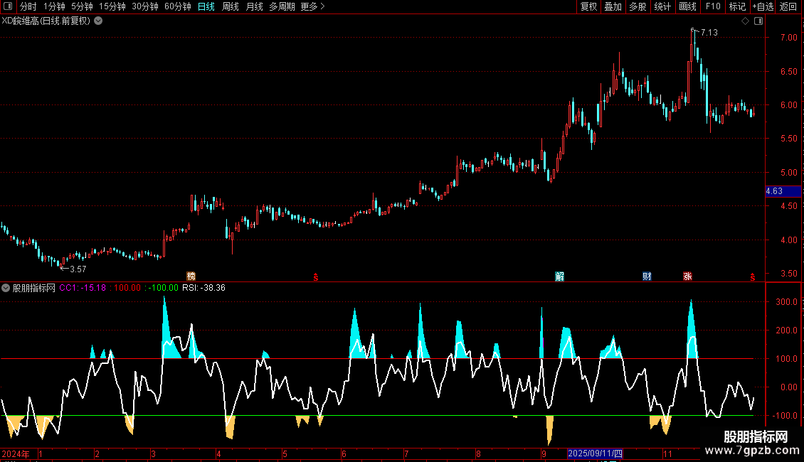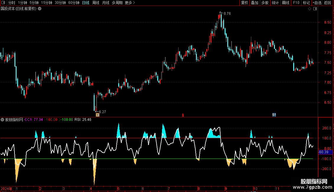 CC1: (TYP-MA(TYP,M))/(0.015*AVEDEV(TYP,M)),COLORFF00FF;