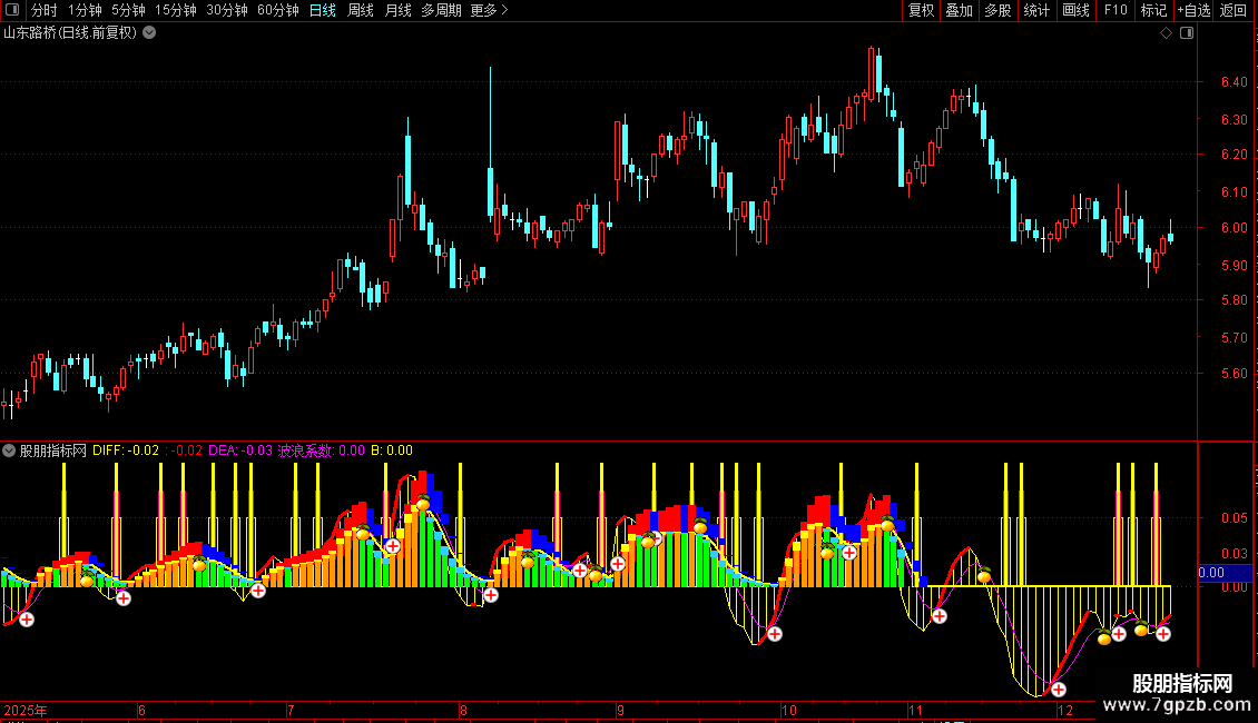 STICKLINE(crOSS(MA(A,1),G),0.05,0,4,1),COLORYELLOW,LINETHICK2;{选股信号:结合线下DIFF看}