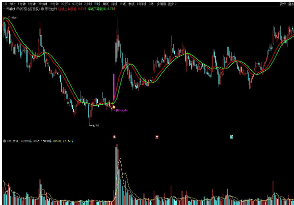 绿线下熊股出:MA(红线上牛股起,6),COLORGREEN,LINETHICK2;