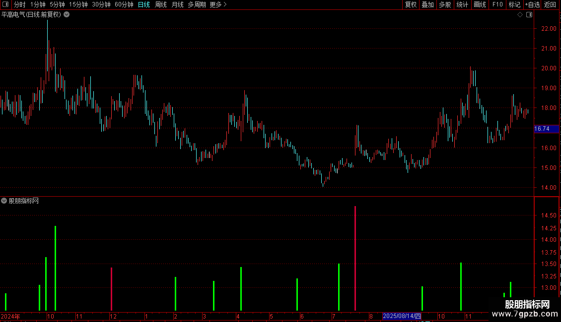 STICKLINE(C/REF(C,1)<0.901,VZ,(0-HLMN3)*HLMN2/HLMN4+HLMN1,2,0),COLORGREEN;