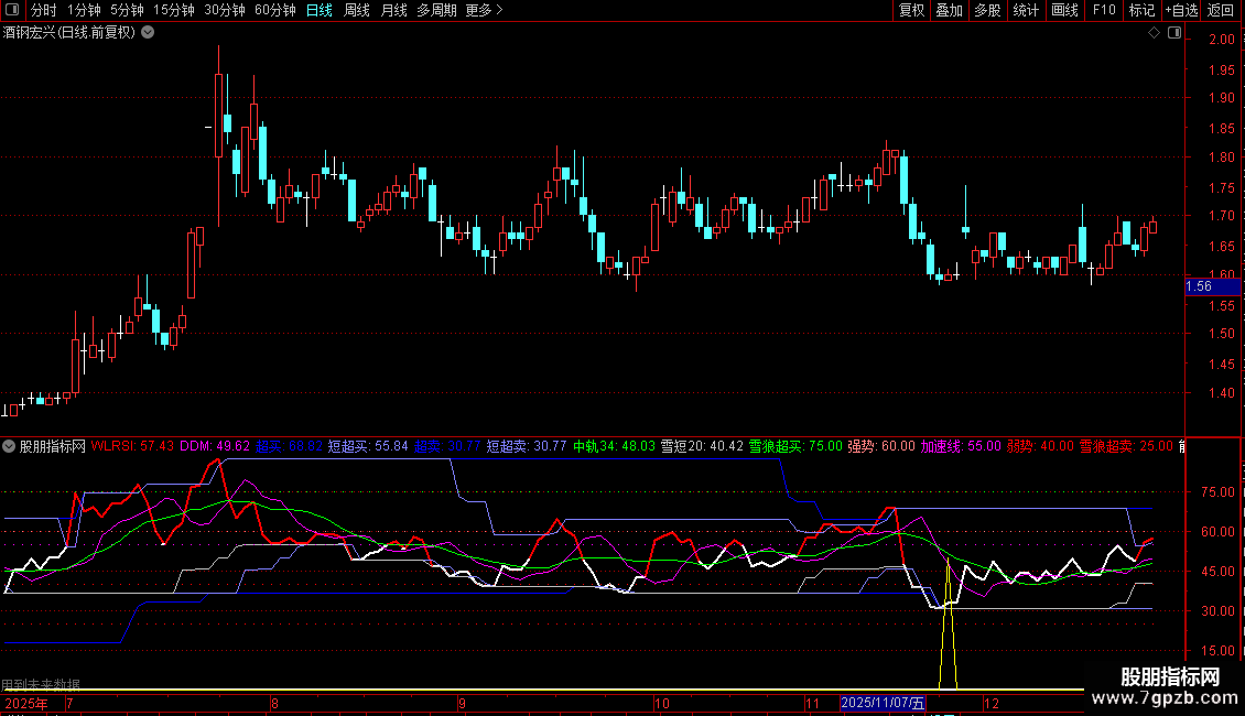 短超买:REF(HHV(WLRSI,26),1),COLORFF8080;