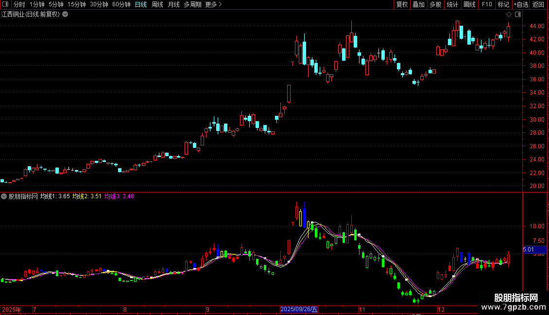 STICKLINE(开<=收 AND B,收,开,2,1),COLORRED;