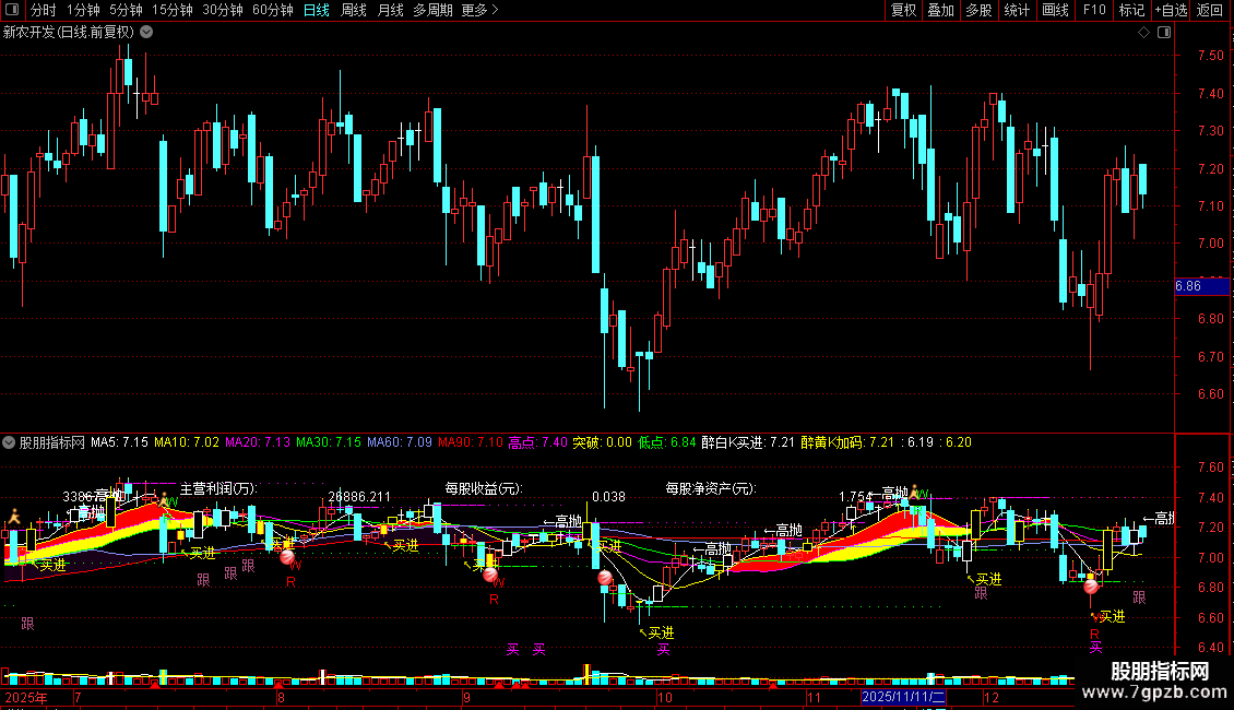 DRAWTEXT(TJ=1,(V-HLMN3)*HLMN2/HLMN4+HLMN1+0.2,'买')COLORMAGENTA;
