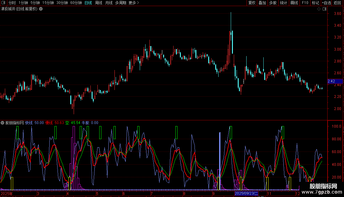 空:SMA(慢线,M2,1),COLOR00FF00;