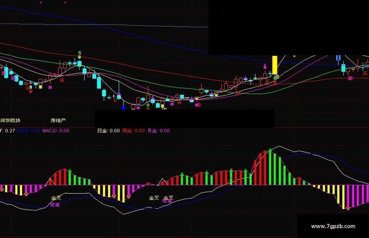 月金:IF(CROSS(月DIF,月DEA),0.15,0),COLORFF00FF;
