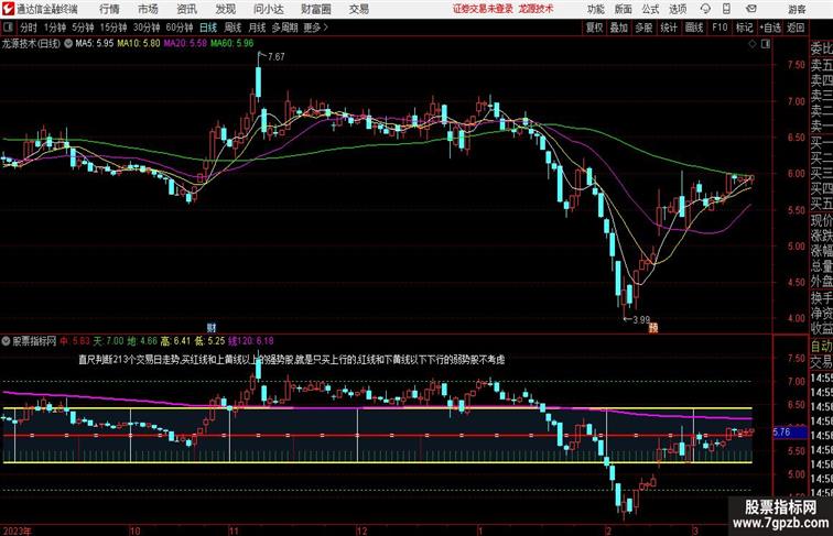 DRAWTEXT_FIX(1,0.1,0.02,0,'直尺判断213个交易日走势,买红线和上黄线以上的强势股,就是只买上行的,红线和下黄线以下下行的弱势股不考虑'),COLORWHITE;
