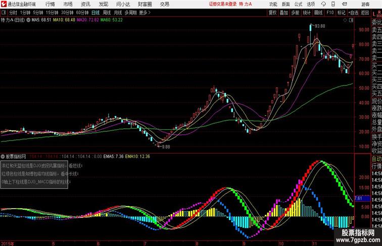 DRAWTEXT_FIX(C>0,0,0.03,0,' 洋红和天蓝柱线是DJG波段风暴指标,看短线;'),COLORGRAY;
