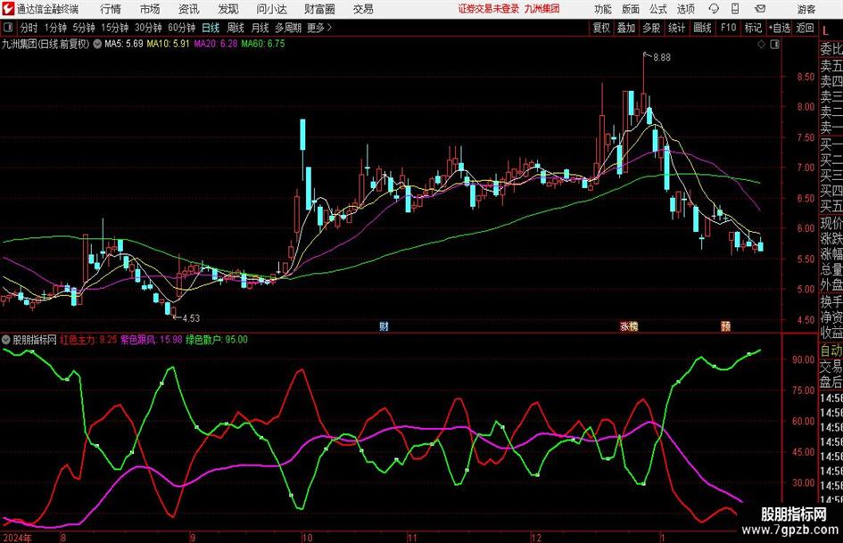 紫色跟风:EMA(X_4,4),COLORMAGENTA,LINETHICK2;