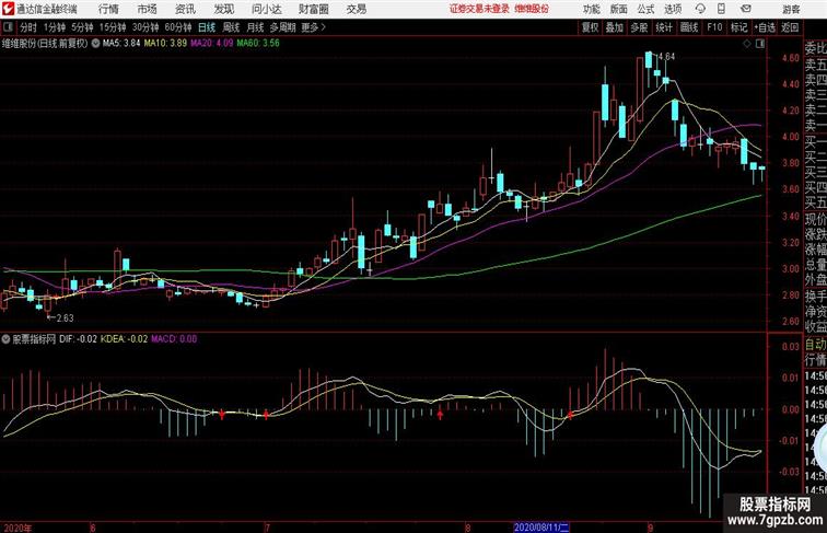 输出平滑异同平均线:(KDIF-KDEA)*2,COLORSTICK