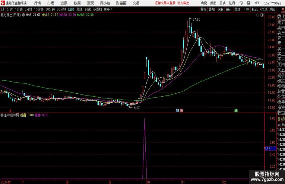 涨停:EMA(X_7/X_8,2.0332)>HHV(MA(EMA(X_9/X_10,2.0332),5),21) AND CROSS(CLOSE,1.13*EMA((EXPMA(CLOSE*VOL,3)/EXPMA(VOL,3)+EXPMA(CLOSE*VOL,6)/EXPMA(VOL,6)+EXPMA(CLOSE*VOL,12)/EXPMA(VOL,12)+EXPMA(CLOSE*VOL,24)/EXPMA(VOL,24))/4,13)) AND REF(CLOSE,1)*1.1-CLOSE<0.01 AND HIGH=CLOSE,COLORMAGENTA;