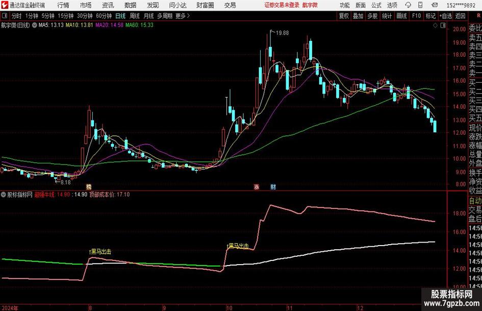 WW:=CROSS(顶部成本价,超强牛线) AND REF(超强牛线,2)<超强牛线;