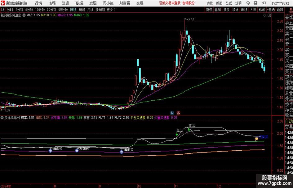 全仓买2:=(((FLY1 > REF(FLY1,1)) AND (COUNT((FLY1 > REF(FLY1,1)),N1) = 1)) AND (FLY1 < 海底));