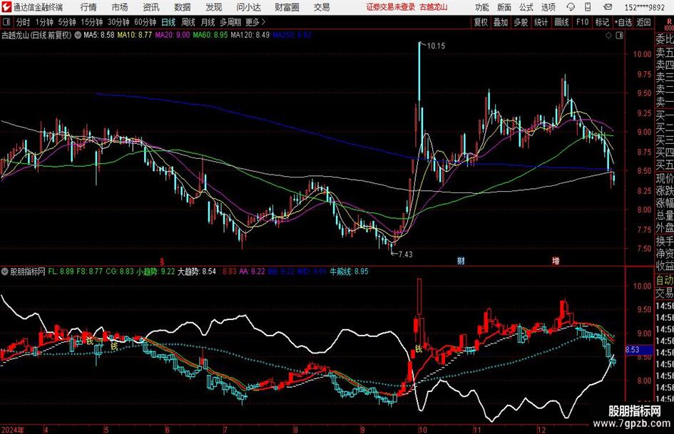 小趋势:CG-(MA(CLOSE,3)-CG),COLORFFFFFF,POINTDOT,LINETHICK0;