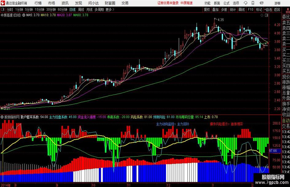 通达信主力动向监控副图指标 操作风险提示 源码 附图