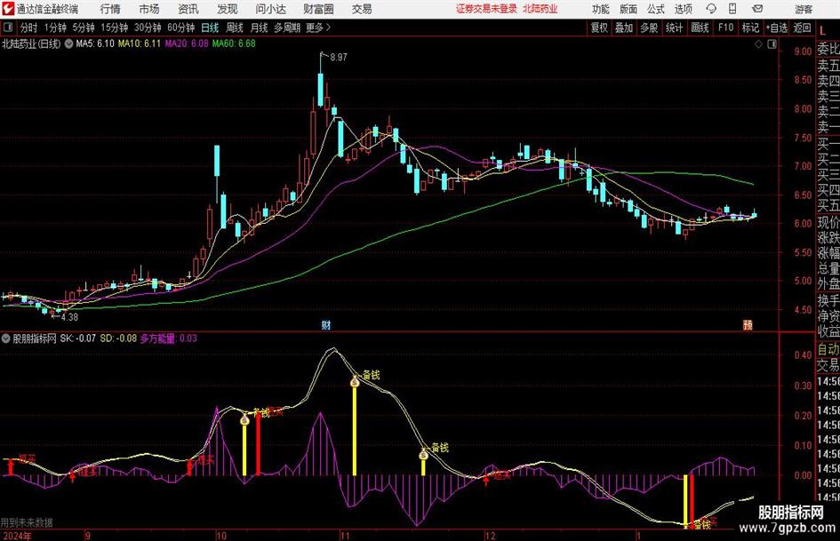 DRAWTEXT(CROSS(ZIG(3,8),REF(ZIG(3,8),1)),SK,'←备钱'),LINETHICK2,COLORYELLOW;