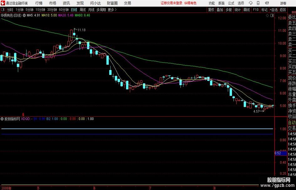 股朋指标网:=(HIGH+LOW+CLOSE)/3;SSDD10:=VOL/IF(HIGH=LOW,4,HIGH-LOW);