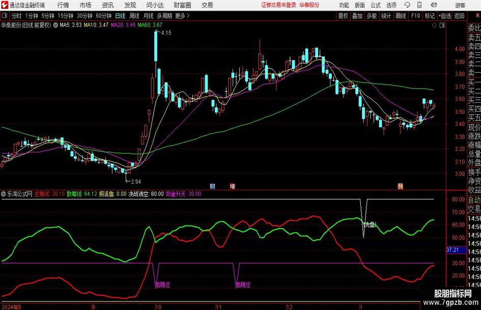 通达信追随庄 洗盘后介入副图指标 源码 附图