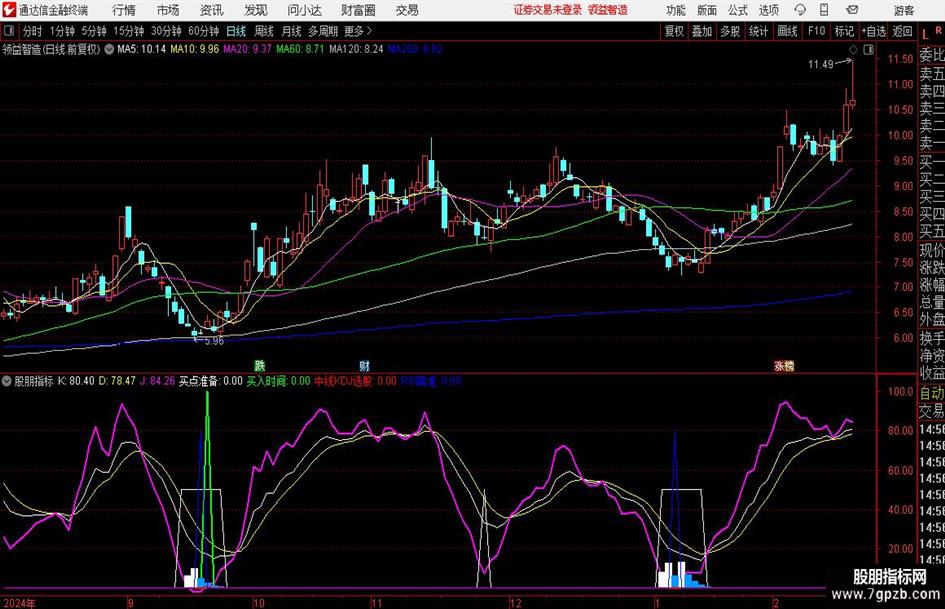 RSI蛮准:(CROSS(RSI4,11))*(80),COLORBLUE;
