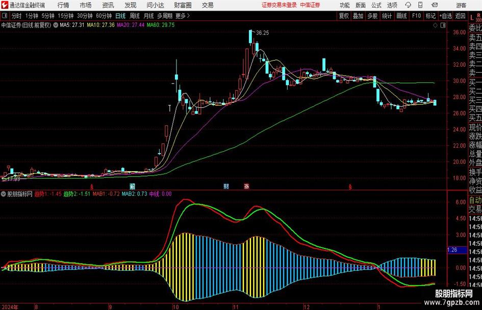 STICKLINE(趋势1>趋势2,机构出,机构进,0.8 ,0 ),COLORYELLOW;