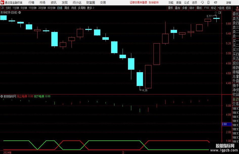 向下电梯: IF(CLOSE < REF(CLOSE,1) AND 波动幅度 > M, 1, 0),COLORGREEN,LINETHICK2;