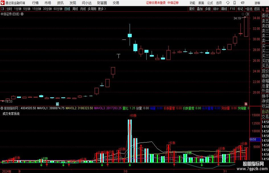 价平量增:IF(C=REF(C,1) AND VOL>REF(VOL,1)*1.3,VOL,0),COLORBLUE;