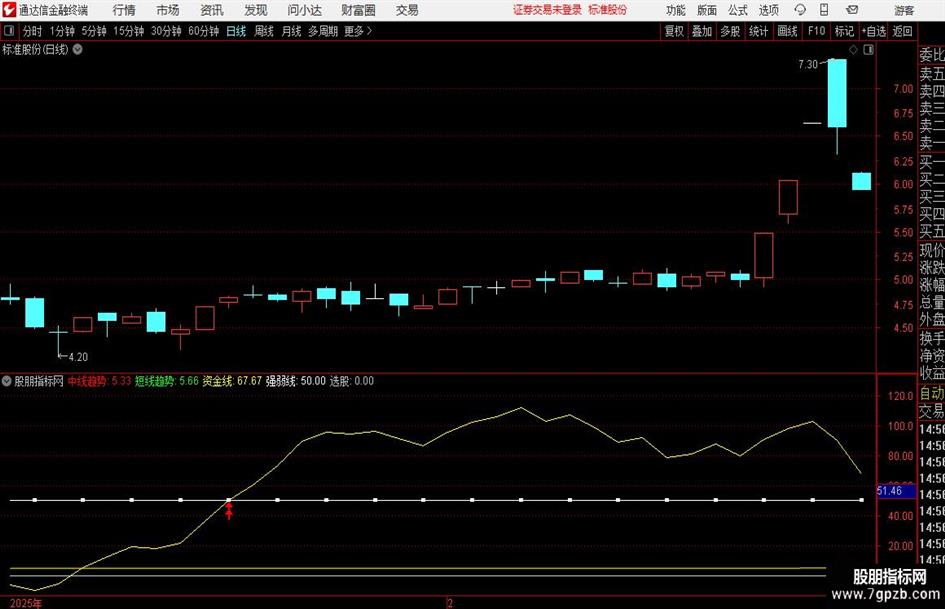 卖出信号:=CROSS(强弱线,资金线) AND 资金线>40;