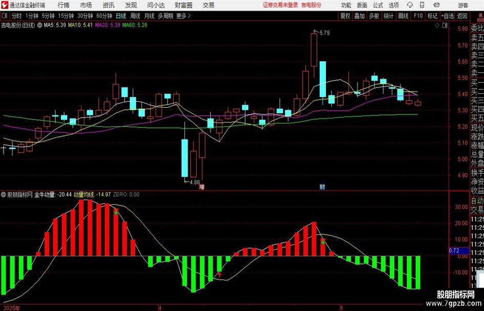 STICKLINE(金牛动量>0,0,金牛动量,2,0),COLORRED;