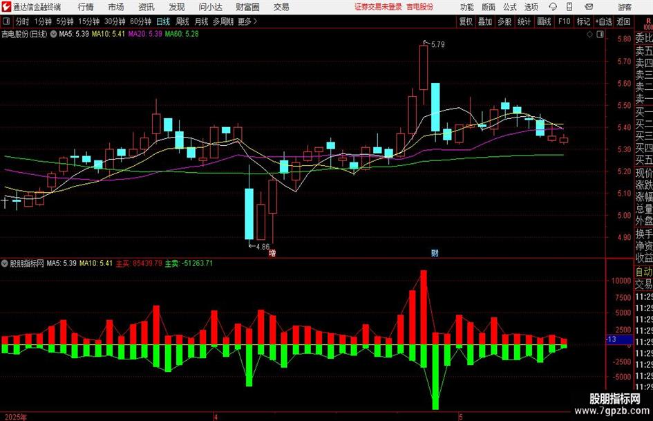 主卖:IF(CLOSE>OPEN,0-VAR1*((HIGH-CLOSE)+(OPEN-LOW)),IF(CLOSE<OPEN,0-VAR1*(HIGH-LOW),0-VOL/2)),COLORGREEN;