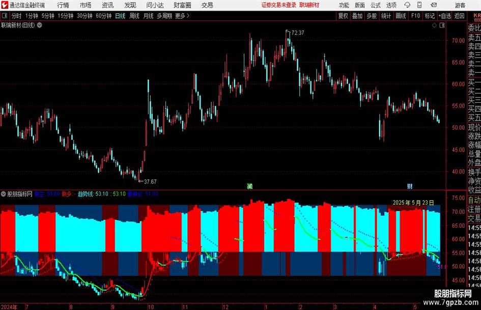 趋势线:(MA(操盘线,5)),COLORCYAN,LINETHICK2;