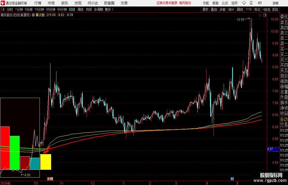 黄次数:COUNT(V>DYNAINFO(16)*10 AND C>REF(C,1),0),COLORYELLOW,NODRAW;