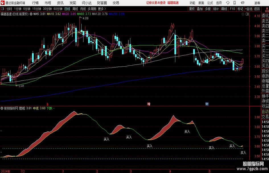 DRAWTEXT(O<中线 AND C>短线 AND REF(C,1)<下跌,L*0.99,'买入');