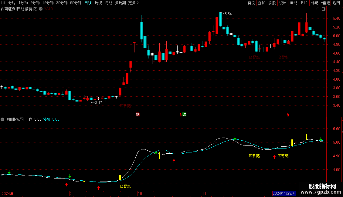 DRAWTEXT(CROSS(FF,MA15),(LOW * 0.94),'底背离'),COLORYELLOW;