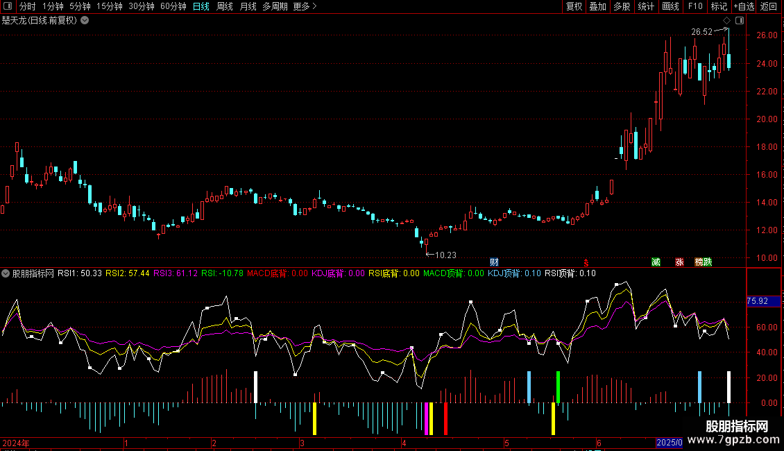 RSI顶背:IF(X_15>0,0.1,0),POINTDOT,COLORWHITE;