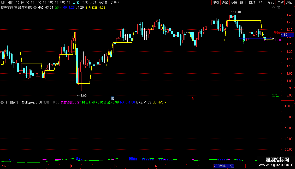 主力成本:IF(HV,C,REF(CLOSE,FT)),COLORYELLOW,LINETHICK2;