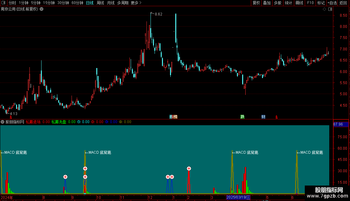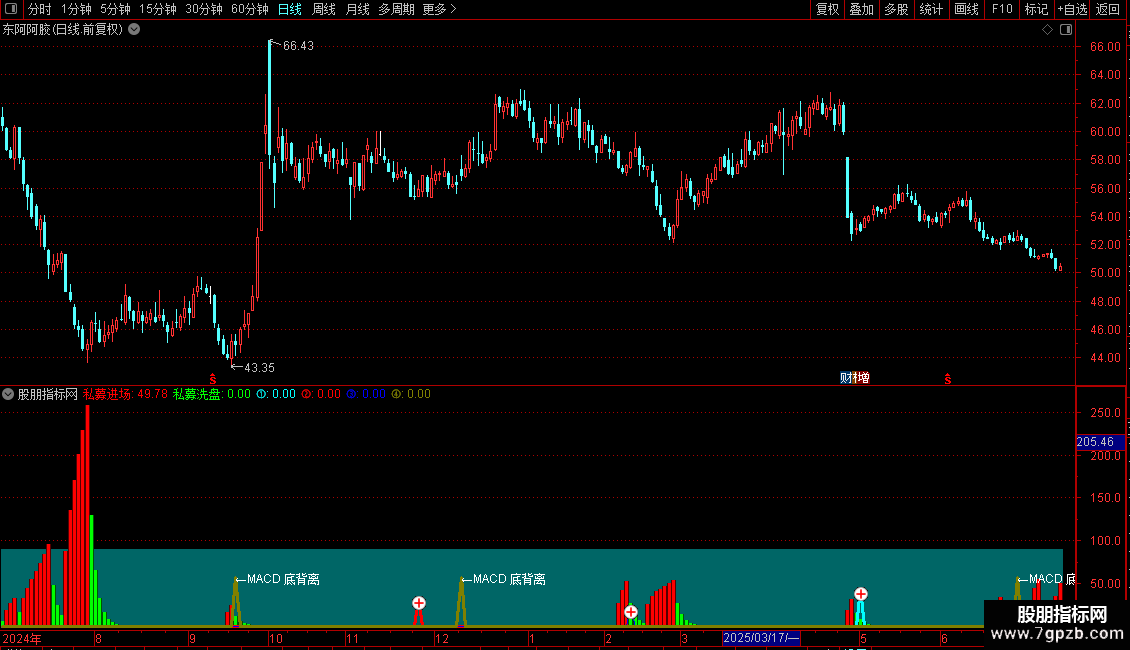DRAWTEXT(底背离,54,'←MACD 底背离'),COLORWHITE;