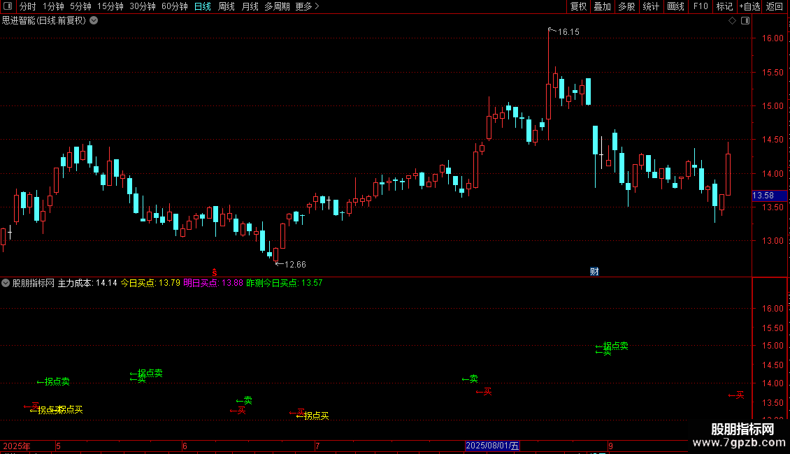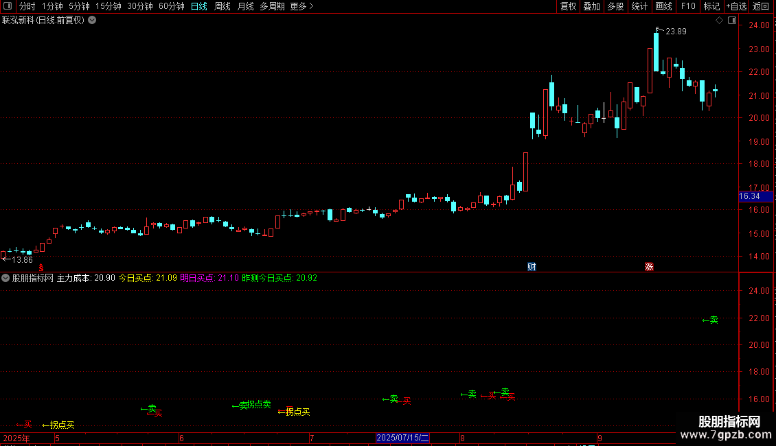 DRAWTEXT(CROSS(卖线,买线),HIGH*1.01,'←卖'),COLORGREEN;