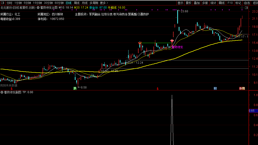 指标越简单越好,当突破前期高点,出现“蓄势待发”信号,即可跟踪关注,结合其他指标,待机而动!