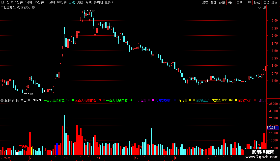 一百天低量排名:LOD(V,100),NODRAW,COLORGREEN;