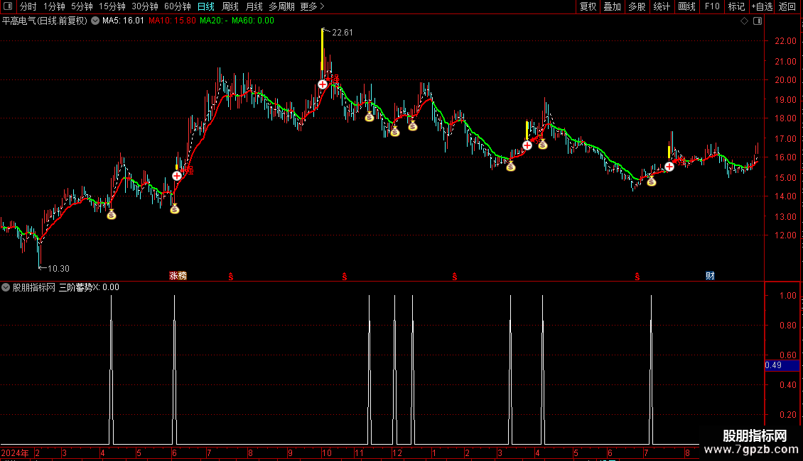 2、钱袋子信号即为公式 适用于尾盘 当信号趋势向上且均线呈多头排列发散时 是捕捉大幅拉升的入场时机