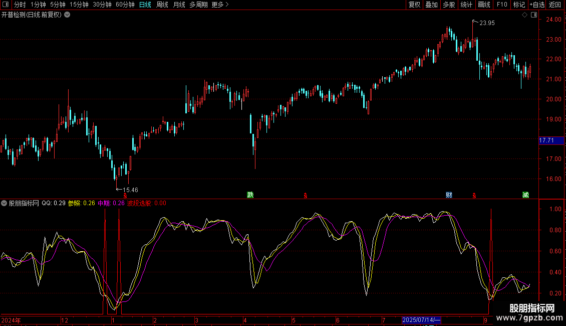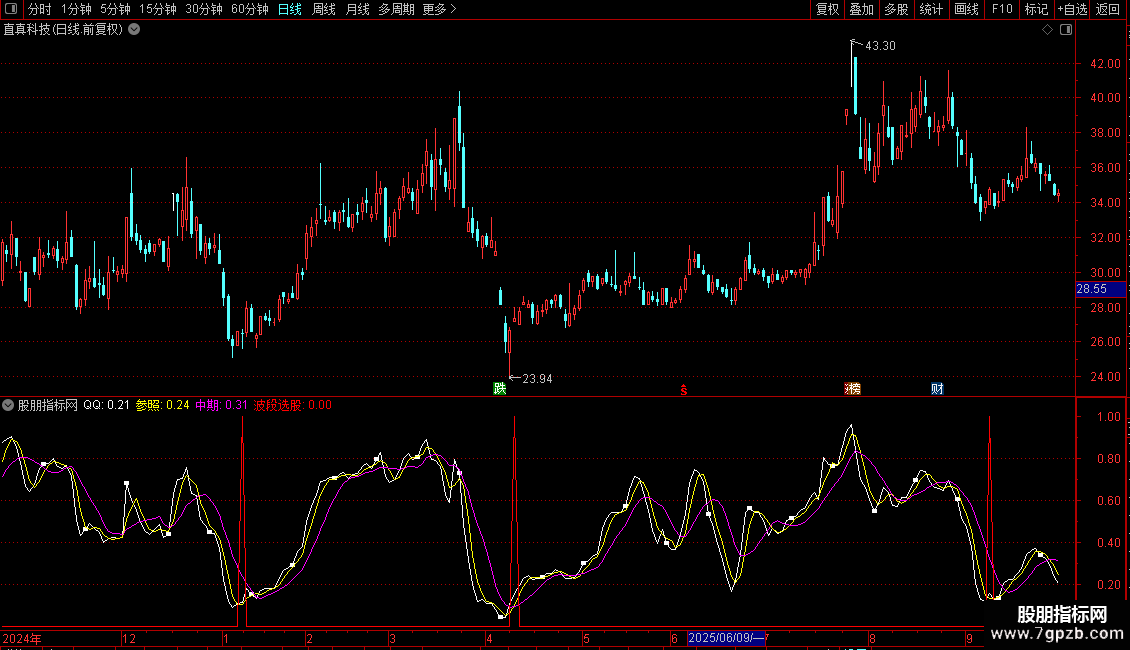 波段选股:RR AND NOT(REF(RR,1)) AND (RR1<-100 AND BB1<-100) AND CB1<-100,COLORRED;