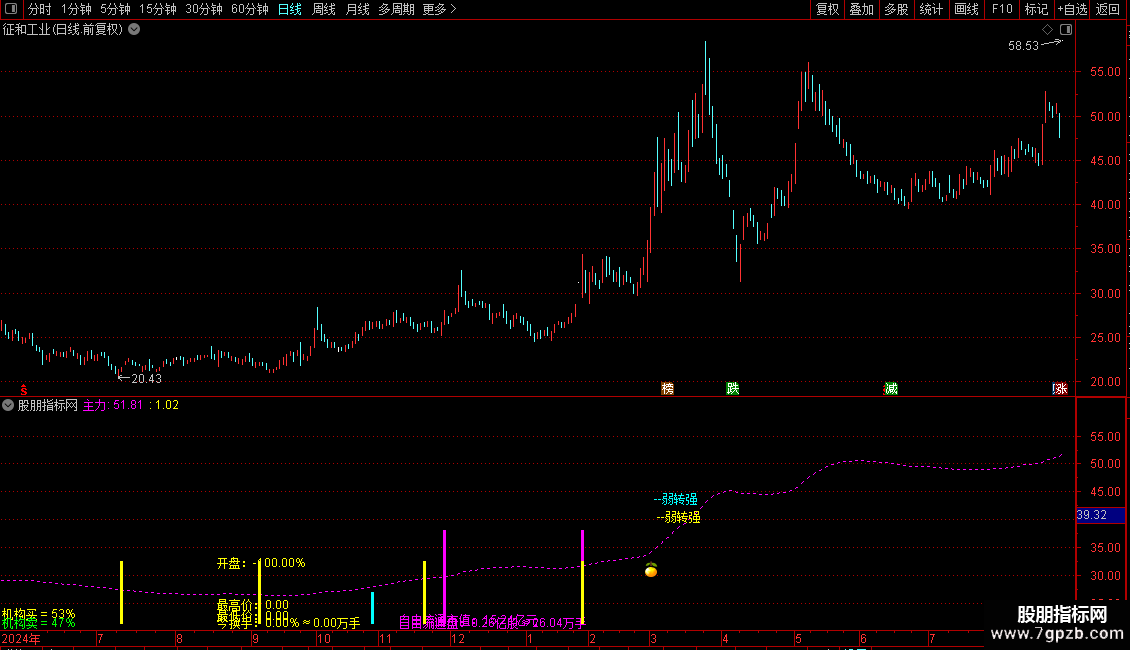 DRAWTEXT(CROSS(主攻,1.02),C*0.999,'--弱转强'),COLORCYAN;