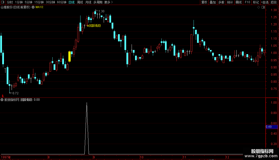DRAWTEXT(回踩吸纳,L,'☆回踩低吸'),COLORYELLOW;