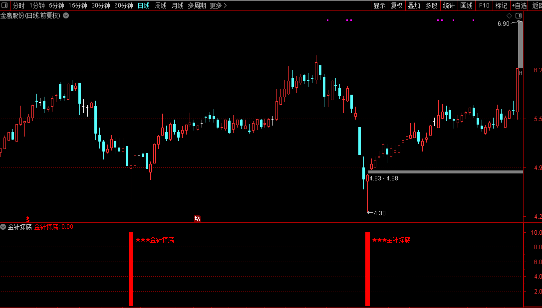 通达信【金针探底】副图/选股指标极限抄底无未来函数手机电脑适用源码