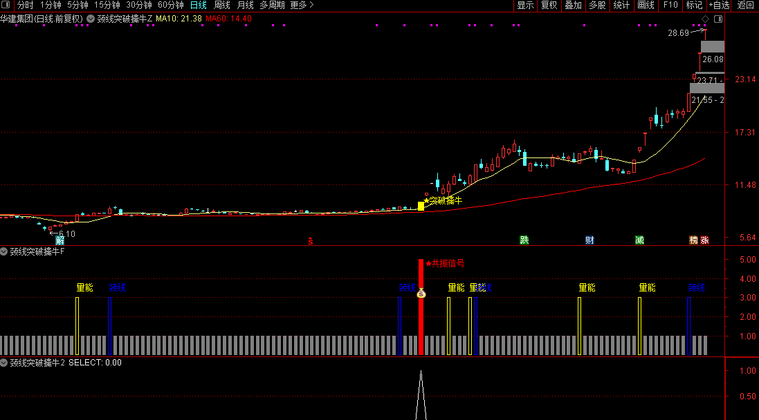 通达信【颈线突破擒牛】主副图/选股量能偏离和条件颈线突破同时满足源码