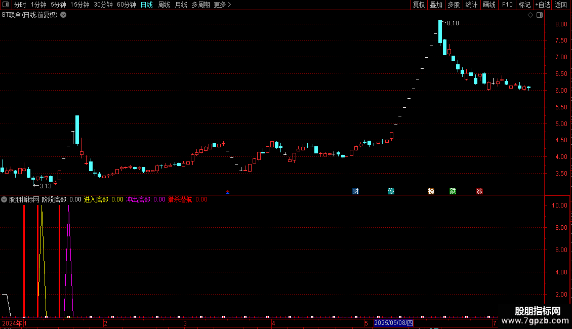 猎杀潜航:IF(CROSS(趋势,底部),10,0),STICK,COLORRED,LINETHICK3;