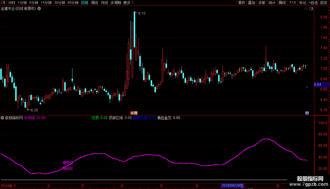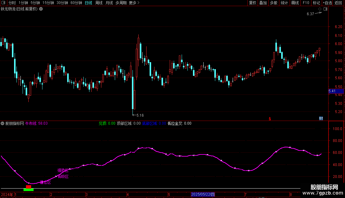 DRAWTEXT(CROSS(牛市线,20),30,'强势区'),COLORFF00FF;