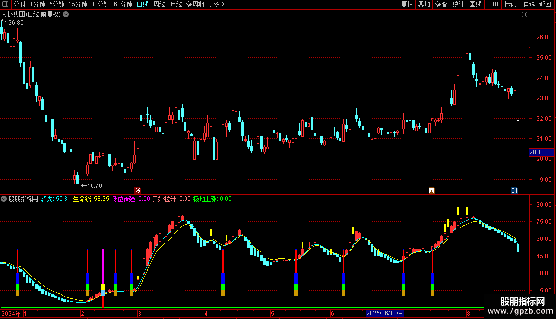 极地上涨:IF(A6,领先,0),COLORGREEN,LINETHICK2;