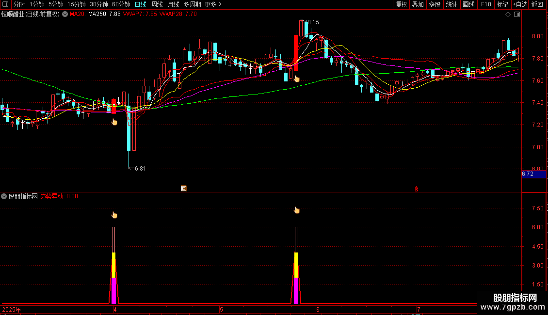 DRAWICON(趋势异动=5,LOW*0.995,11);