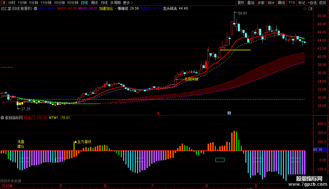 DRAWTEXT(龙头模式,L*0.99,'---主力筹码'),COLORYELLOW;
